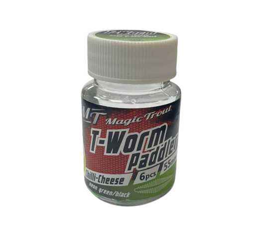 Quantum Magic Trout T-Worm Paddler este un o naluca tip vierme (worm). Actiunea agresiva a nalucii atrage atentia pestilor. Naluca a fost dezvoltata de echipa Magic Trout pentru pescuitul pastravului in iazuri special amenajate, cunoscut sub denumierea de Trout Area. Naluca este la fel de eficienta in pescutiul de biban sau clean, in sezonul rece. Corpul este prevazut cu striatii ce creeaza vibratii, ce vor declansa atacul pestilor rapitori. Recomandam aceasta noua naluca din gama producatorului Quantum in pescuitul de pastrav, clean si biban.