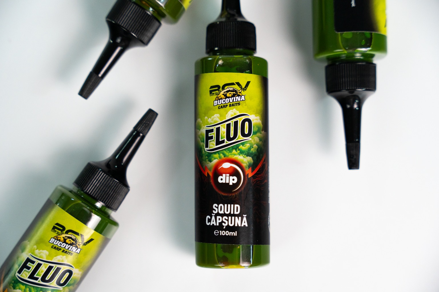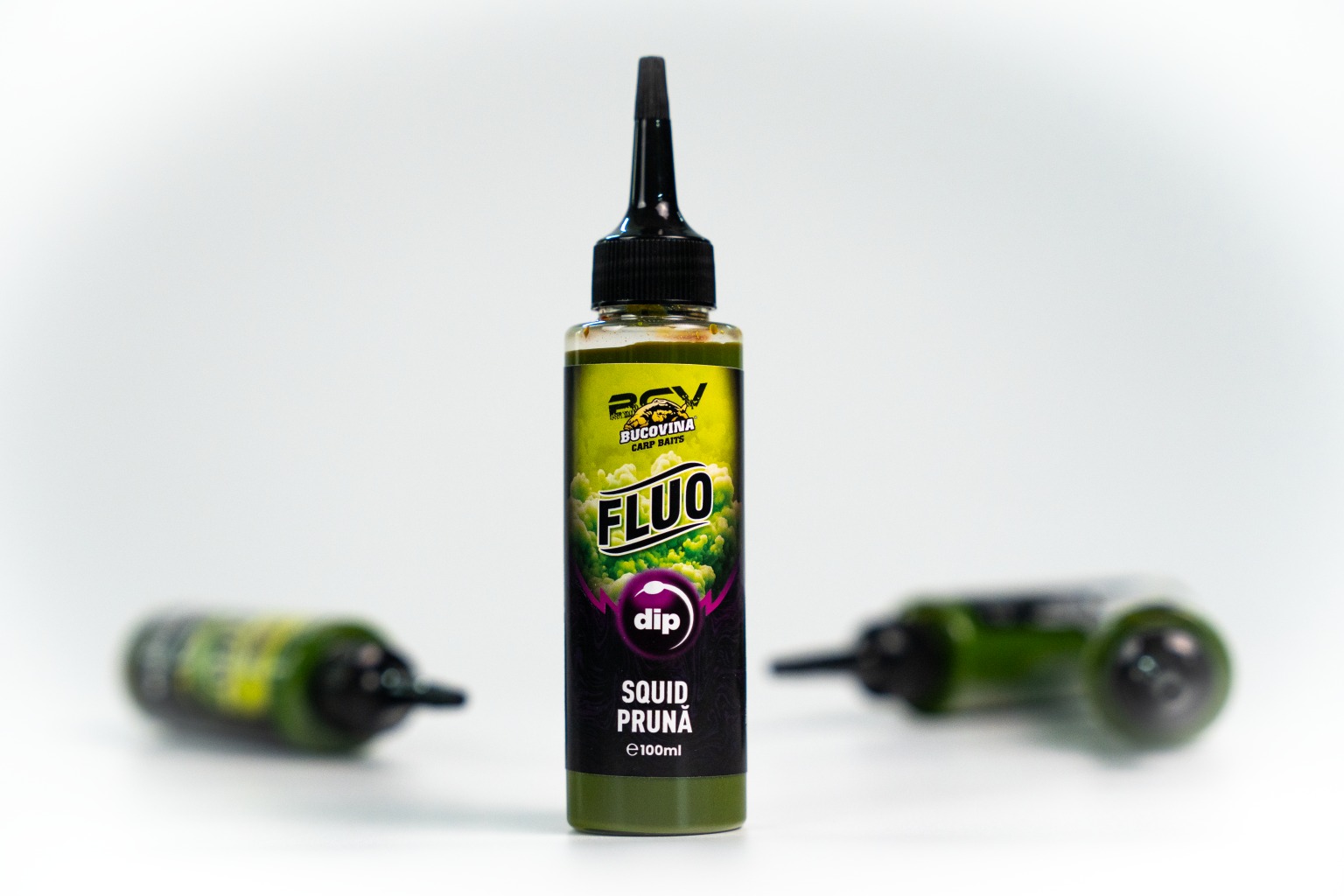 Aditiv Lichid Bucovina Baits Fluo Dip, 100ml – Vizibilitate Maxima si Atractie Sporita pentru Momeli