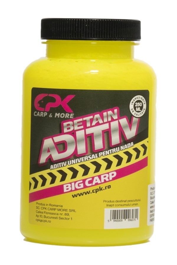 Aditiv universal poate fi folosit cu orice timp de nada. Contine Betaina anhidra 99% puritate, arome si atractanti. Ajuta la omogenizarea nadei. Este disponibil in diverse arome, ambalat in flacoane de plastic de 250ml. Acest aditiv este PVA FRIENDLY (nu topeste materialele PVA).