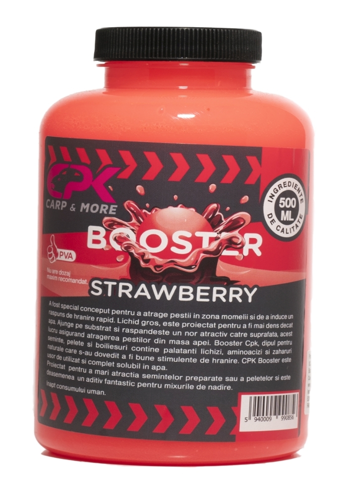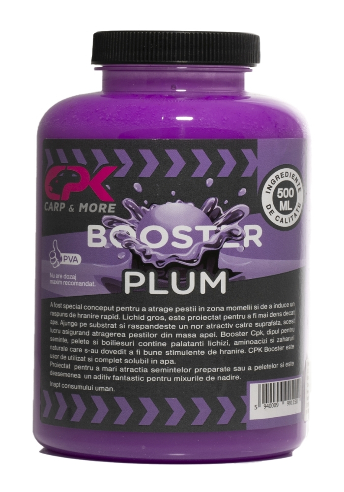 Booster CPK, dipul pentru seminte, pelete si boiliesuri contine palatanti lichizi, aminoacizi si zaharuri naturale care s-au dovedit a fi bune stimulente de hranire. CPK Booster este usor de utilizat si complet solubil in apa. Mareste atractia semintelor preparate sau a peletelor, si este de asemenea un aditiv fantastic pentru mixurile de nadire.