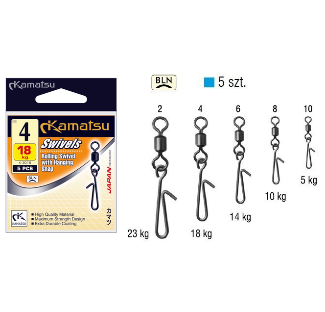 Agrafa cu Vartej Kamatsu Swivel with Hanging Snap K-3018, 5buc/pachet