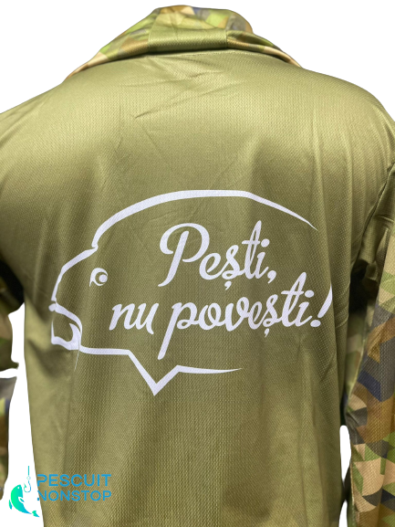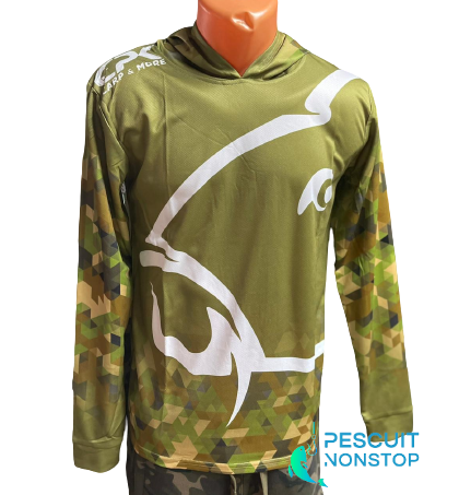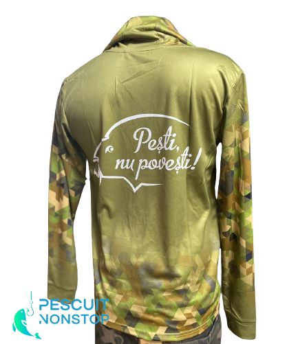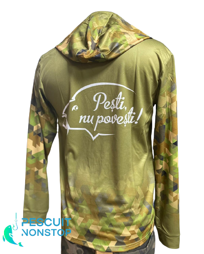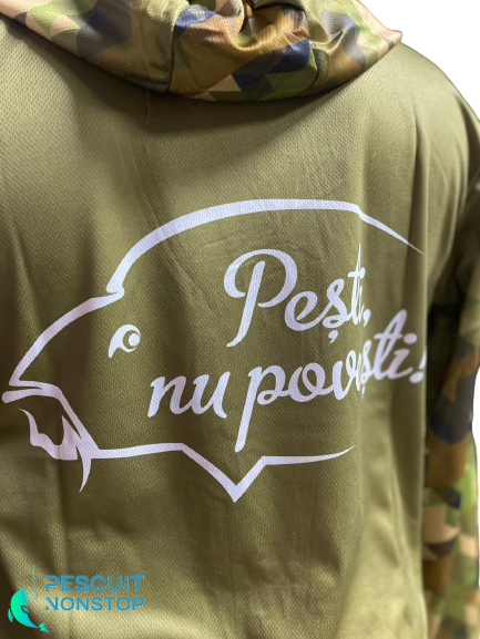 CPK UV Camo este o bluza ce ofera o protectie excelenta in sezonul cald. Este fabricata din material ce protejeaza impotriva razelor UV (UPF 50+), cu o respirabilitate remarcabila. Bluzele prezinta si o gluga de dimensiuni generoase, ce ofera posibilitatea acoperirii capului in timpul purtarii unei sepci sau a unei bandane. Designul bluzei prezinta logo-ul producatorului CPK, faimosul slogan "Pesti, nu povesti!", si un imprimeu prietenos cu un crap, oferind pescarului sentimentul de apartenenta in echipa CPK.