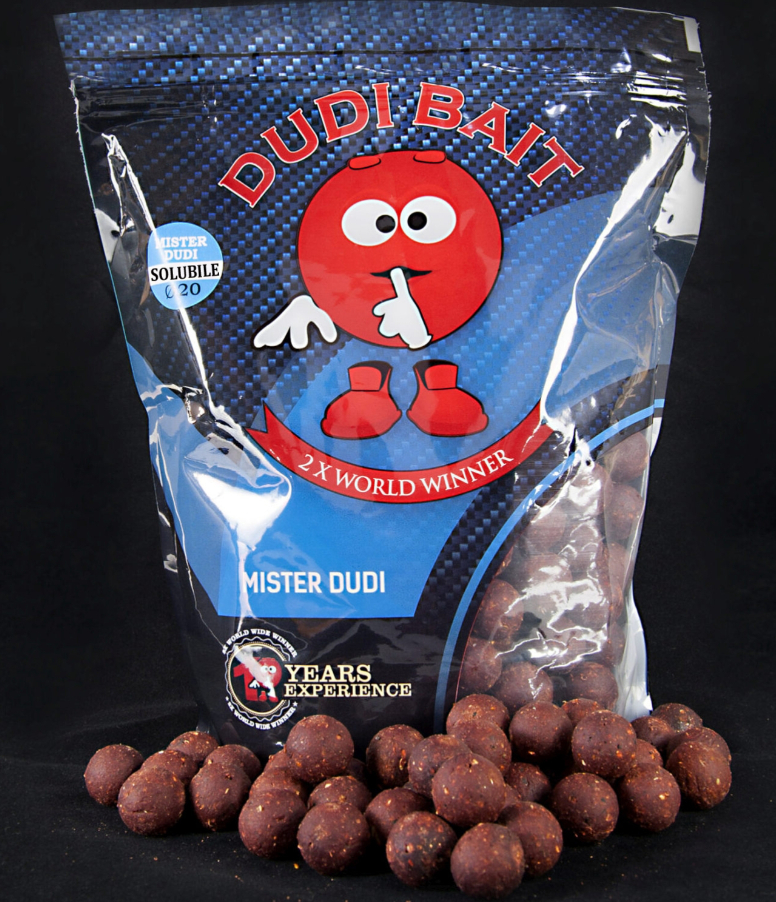 Valoarea proteica a mixului este in jur de 39%, iar bila in sine contine atat aminoacizi liberi (din partea lichida), plus aminoacizii din fainuri (dupa metabolizare) la o valoare pe care am incercat sa o apropii de necesarul zilnic al crapului. Pe de alta parte, boiliesurile Mister Dudi, contin alte elemente esentiale in nutritia crapului, fapt care conduce la acceptarea acestora de catre peste si crearea unei mici dependente.