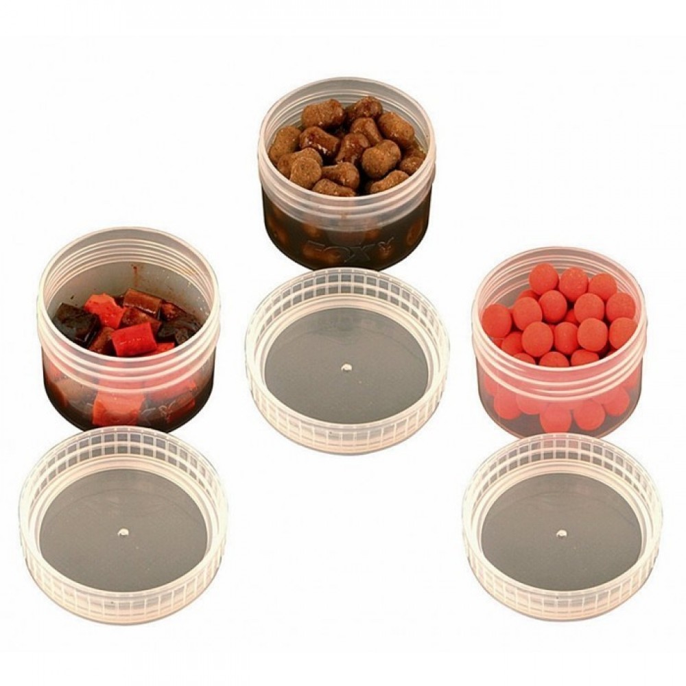 Proiectat pentru stocarea în siguranță a tuturor momelilor cu talpă Fox Bait Tubs este prevăzut cu un capac etanșat din cauciuc, cu o garnitură de etanșare din cauciuc O, care permite stocarea fără a se împrăștia sau a scurgerilor lichidului din interior.Borcanele Fox sunt perfecte pentru pastrarea pop-up-urilor sau a boiliesurilor in dip. Varianta Half Size are jumatate din capacitatea dimensiunii standard.