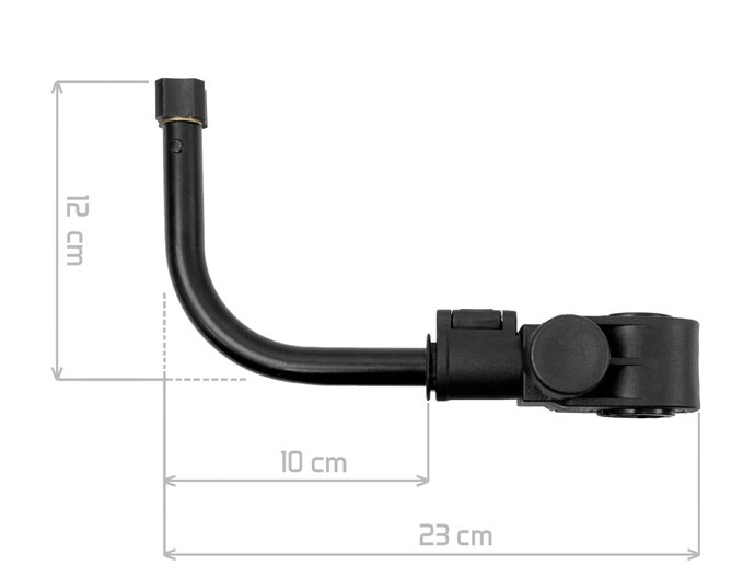 Suport universal feeder în forma literei L, adecvat pentru utilizarea de exemplu în combinaţie cu suportul lansetelor, eventual ca suport al plasei feeder. De asemenea poate fi utilizat ca suport individual al lansetei. Dispune de o piesă de prindere cu diametru variabil de 25, 30 şi 36 mm datorită căreia se potriveşte la aproape toate fotoliile produse standard de pe piaţă. Avantajul piesei de prindere constă de asemenea şi în faptul, că este prevăzut cu un clips, datorită căruia nu este necesară luarea de pe fotoliu a întregului sistem. Este por şi simplu suficientă deblocarea clipsului şi tragerea suportului, pe când piesa de prindere rămâne fixată de fotoliu pentru pescuitul în continuare. Deviza acestei prinderi este de asemenea şi faptul, că este identică la mai multe suporturi din seria ATOMA. Datorită acestui fapt este posibilă schimbarea reciprocă a suporturilor în funcţie de necesitate fără obligativitatea demontării a întregii piese de prindere. Suportul dispune de un filet standard dar şi de un conector de îmbinare, pe care este un filet cu diametru mai mare. Datorită acestui fapt la acest suport se potriveşte orice suport pentru lansete fabricat standard eventual plasă.