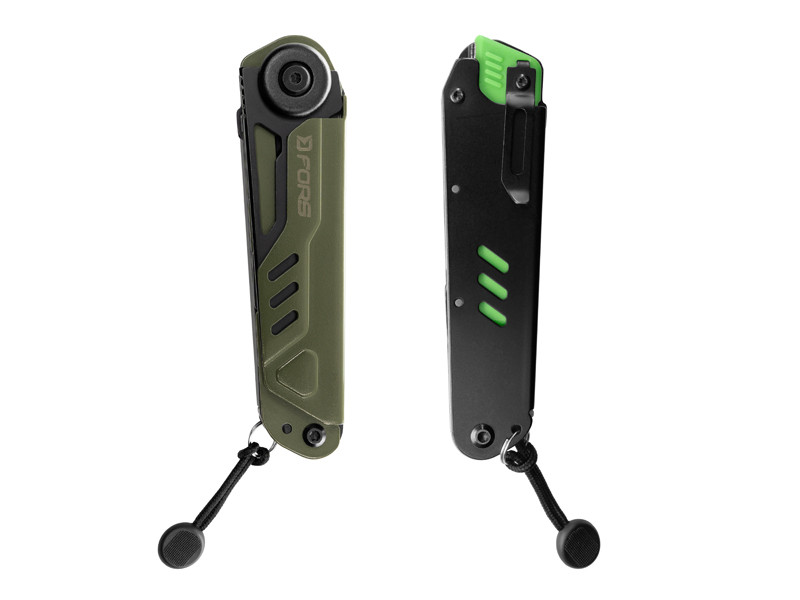 - Peste 20 de functii intr-un singur instrument: FORS integreaza patru unelte principale – cutit, fierastrau, foarfeca si surubelnita – care includ la randul lor functii suplimentare precum desfacator de sticle, cheie pentru piulite si surubelnita dreapta.