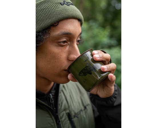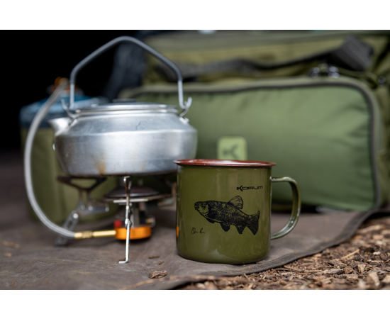 Cană Metalică Korum Classic Enamel Mug Tench – Stil Tradițional și Pasiune pentru Pescuit