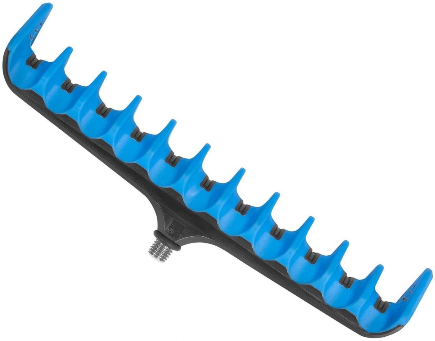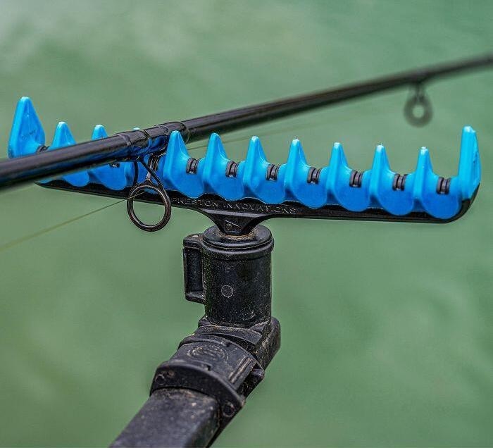 Cap suport prevazut cu 10 posturi, fabricat din plastic rigid cu finisaj soft touch rezistent si durabil. Canelurile speciale dintre posturi permit culisarea lina a liniei de pescuit, protejand in acelasi timp varfurile de semnalizare impotriva socurilor mecanice si a zgarieturilor accidentale, permitand in acelasi timp manevrabilitatea acestora in conditii optime. Fiecare sectiune are peretii suficient de inalti pentru a impiedica tragerea lansetei de pe suport in timpul muscaturilor violente. Dispune de filet universal din otel inoxidabil cu ajutorul caruia se poate atasa la orice tip de scaun modular, pichet sau suport modular.