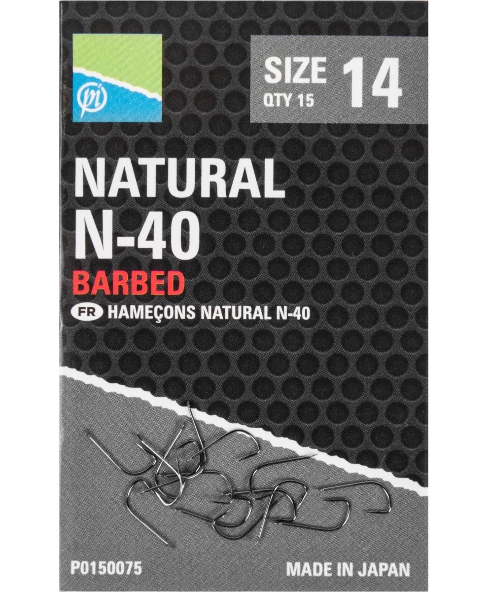 Seria de carlige PRESTON Natural N-40 a fost special conceputa pentru pescuitul la feeder pe ape salbatice atunci cand pestii tinta sunt carasul, crapul, platica etc. Aceste carlige sunt extrem de robuste si foarte rezistente. Forma acestora permite folosirea unei palete extrem de largi de momeli, de la pelete pana la momeli vii sau chiar boabe de porumb, in functie de marimea carligului ales. Varf carligului este special creat pentru o penetrare perfecta, fiind foarte bine ascutit si nu in ultimul rand extra-durabil.