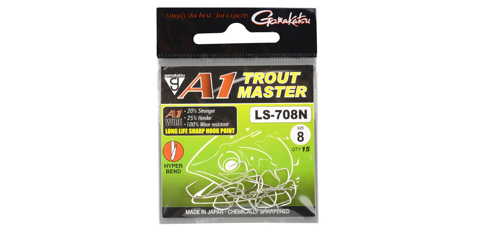 Vârful cârligului ultra ascuțit și standardul pentru o acțiune puternică de vârtej sub apă. Gamakatsu A1 LS-608 este cârligul optim pentru viermi si rame. Carligul nu este rotund, ci plat, ceea ce face ca acesta sa fie mai puternic și îl împiedică să se îndoaie. Cârligele japoneze de la Gamakatsu sunt cunoscute pentru calitatea lor.