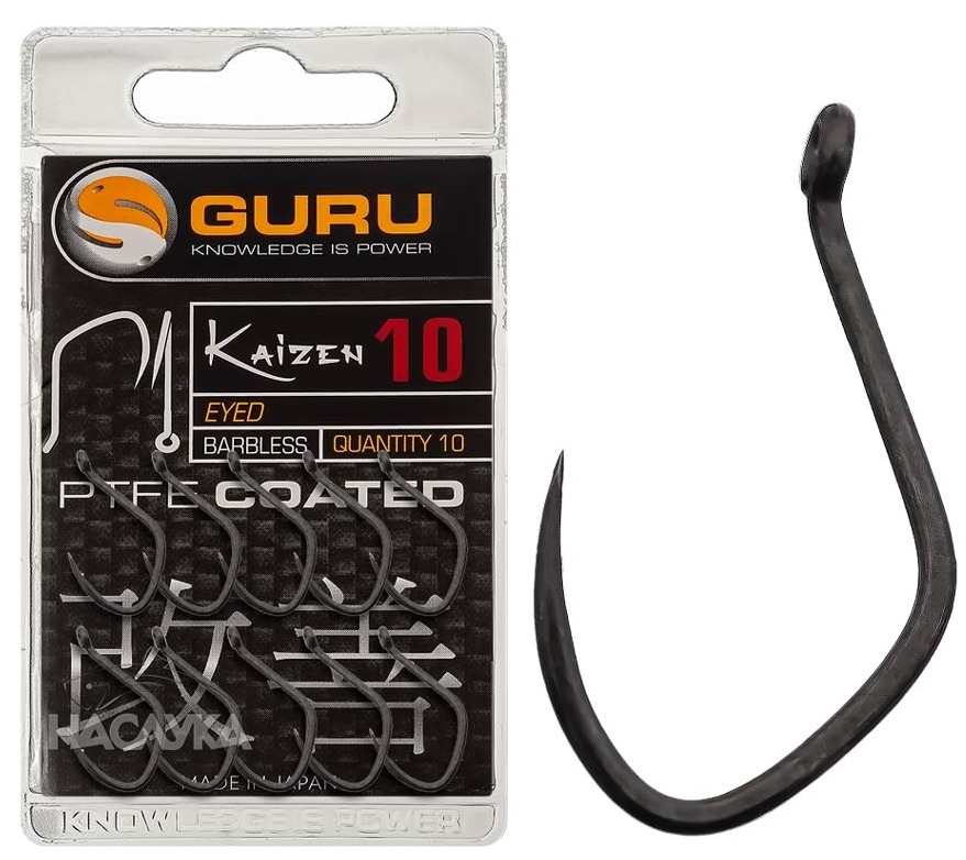 Guru Kaizen Eyed Barbless reprezinta o evolutie naturala a celebrului model Kaizen cu paleta, fiind concepute special pentru pescarii care prefera carligele cu ochet. Aceste carlige combina puterea si precizia cu un design inteligent, oferind o intepare sigura si o prezentare impecabila a momelii. Gama „Barbless” (fara spin) asigura o eliberare usoara a pestelui, respectand principiile pescuitului sportiv.