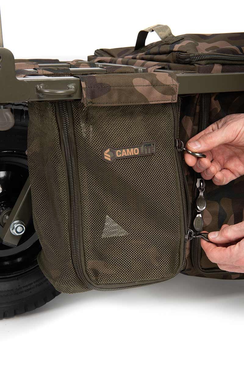 Geanta centrala Under Barrow si buzunarele laterale din panza sunt usor accesibile chiar si atunci cand caruciorul este incarcat, oferind un avantaj real in organizarea eficienta a accesoriilor. Mai mult, caruciorul este complet compatibil cu gama Camolite, permitand o integrare perfecta a gentilor din aceeasi linie.