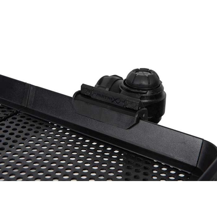 Matrix Folding Side Tray Clamp este un accesoriu proiectat pentru fixarea ferma si sigura a tavitelor laterale Matrix prevazute cu margine X-Strong. Aceasta clema ofera o solutie practica pentru atasarea tavitei de un picior suplimentar, contribuind la o stabilitate superioara in timpul pescuitului, mai ales atunci cand sunt utilizate echipamente sau accesorii suplimentare.