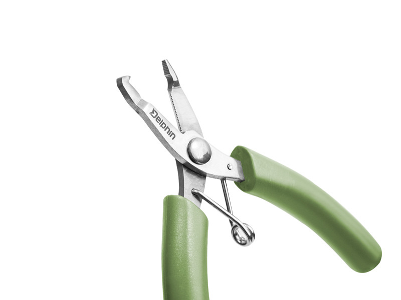 Delphin MINI poate fi folosit cu usurinta pentru a taia firele monofilament, textile si chiar cele din fibra de aramida (Kevlar). Clestele poate fi folosit deasemenea pentru a desface inelele despicate sau pentru fixarea plumbilor despicati. Acest cleste este un accesoriu foarte folositor in toate stilurile de pescuit. Logo-ul Delphin stantat pe falcile clestelui atesta originalitatea si calitatea produsului.