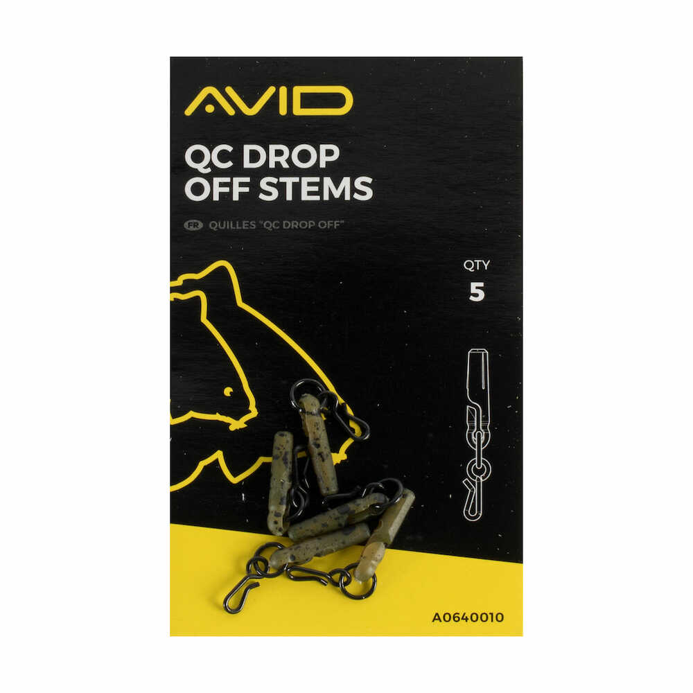 Avid a creat un sistem special Drop Off Stem pentru pescuitul cu plumbi inline, ce permite eliberarea plumbului dupa inteparea pestelui. Sistemul a fost imbunatatit suplimentar datorita agrafei rapide QC Link pentru atasarea monturii facil. Acest sistem este compatibil atat cu produsele Anti Tangle Sleeves de la producatorul Avid Carp, cat si cu plumbii inline. Culoarea acestor clipsuri asigura un nivel de vizibilitate scazut, atunci cand pescuim pe substrat malos si abundent in vegetatie.