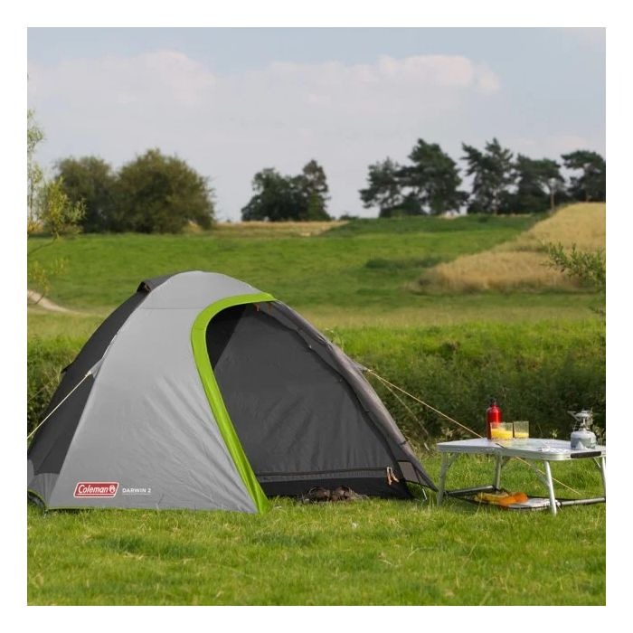 Cortul Coleman Darwin 2, Gri, este o alegere practica pentru camping, festivaluri, excursii de weekend si aventuri in aer liber. Conceput pentru 2 persoane, acest cort tip dom ofera un echilibru bun intre greutate redusa, montare usoara si protectie eficienta impotriva intemperiilor.
