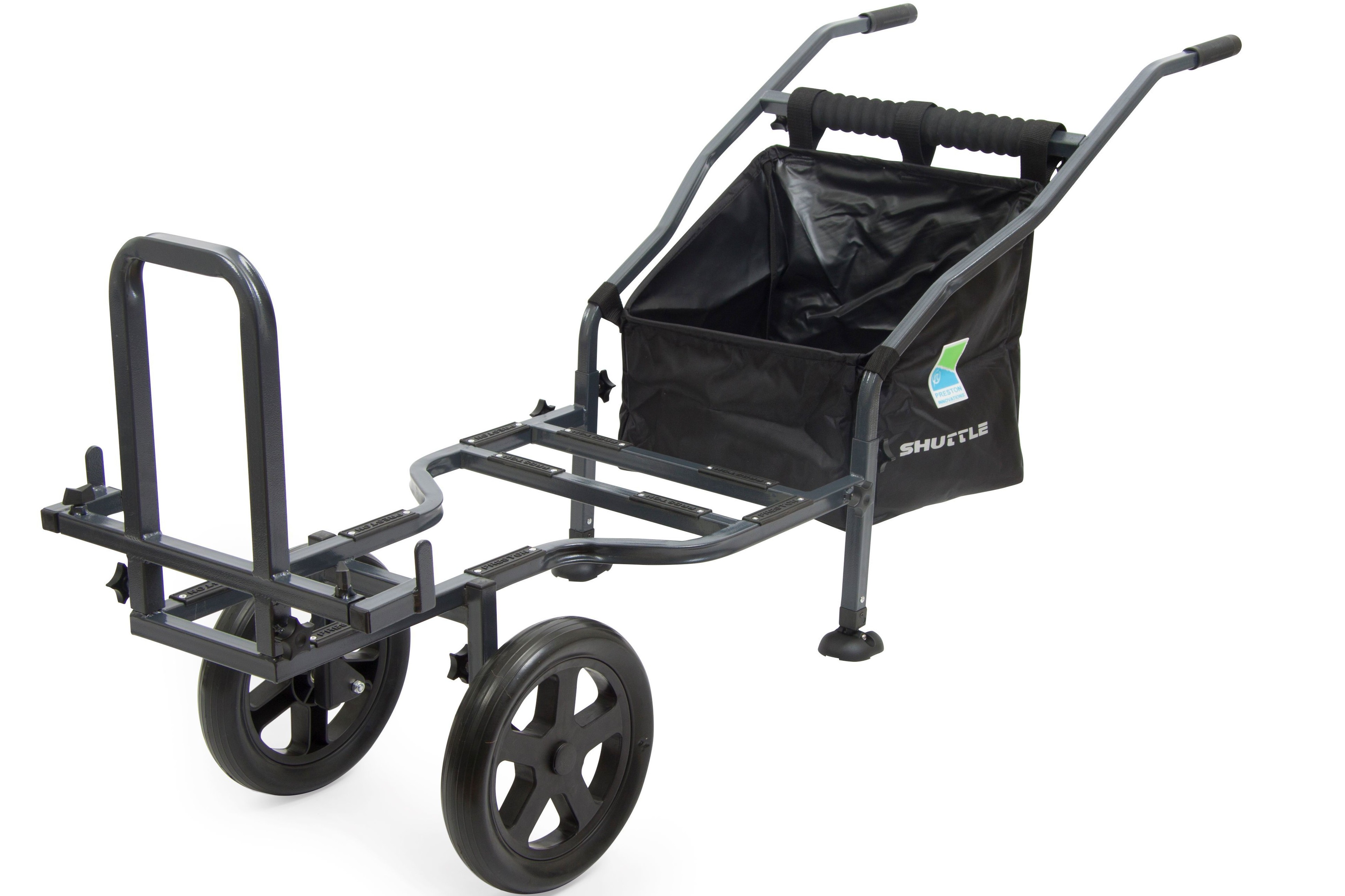 Preston 2 Wheel Shuttle este un cărucior ideal pentru pescari, oferind confort, stabilitate și eficiență maximă, indiferent de tipul de teren.