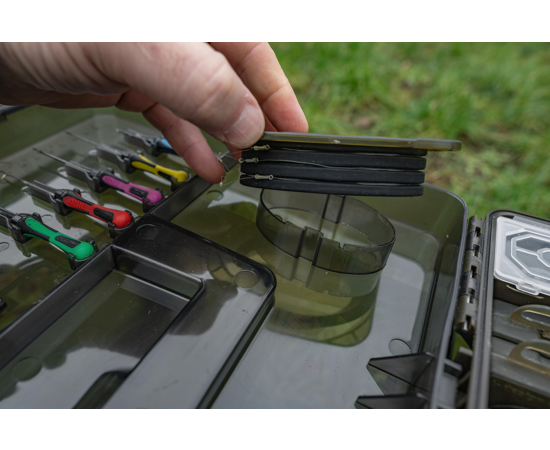 Capacul cutiei ascunde două Slim Rig Blox, ideale pentru păstrarea monturilor gata pregătite. Acestea sunt protejate de umezeală și deteriorare, astfel încât să fii mereu pregătit pentru lansare.