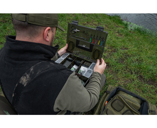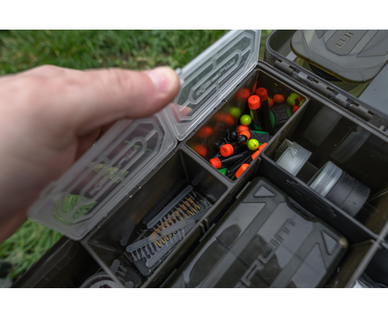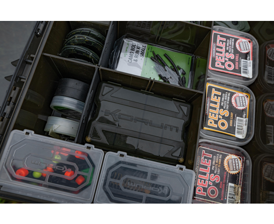 Korum Mega Blox Fully Loaded este o cutie XL premium, creată pentru pescarii care pun preț pe ordine și eficiență. Compartimentarea interioară a fost proiectată pentru a depozita role de fir, plicuri de cârlige, accesorii și scule, cu separatoare ajustabile pentru o configurare personalizată.