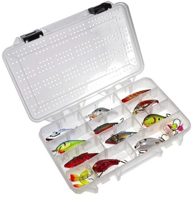 Este o cutie cu un design slim, proiectata cu sute de gauri mici atat in partea de jos cat si in capac, care permit aerului sa circule in jurul nalucilor si accesoriilor umede, lasandu-le sa se usuce, rezistand astfel deteriorarii care se poate intampla in interiorul unei cutii sigilate. Fabricata din plastic extrem de rezistent si durabil, este recomandata pentru depozitarea accesoriilor de pescuit si a nalucilor de spinning imediat dupa ce au fost folosite, fara a fi nevoie sa fie uscate inainte. Cutia dispune de separatoare detasabile cu care puteti customiza interiorul dupa bunul plac si un sistem de inchidere prevazut cu clapete rezistente la uzura. Capacul transparent va permite sa evaluati rapid continutul cutiei.
