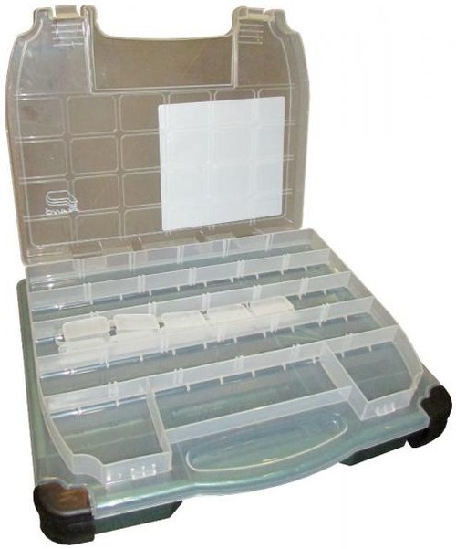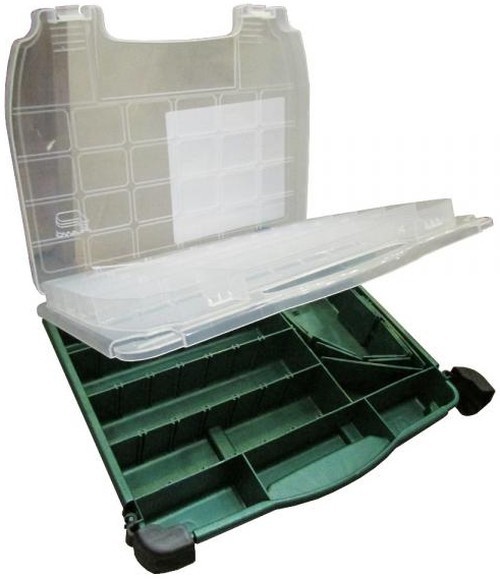 Cutie dubla cu design slim, fabricata din plastic extrem de rezistent si durabil, recomandata pentru depozitarea accesoriilor si nalucilor de spinning. Dimensiunile cutiei sunt 30x37x8.5cm, fiind este impartita in multiple compartimente pe fiecare parte. Cutia dispune de sistem de inchidere etans "LockJaw", prevazut cu doua clapete foarte rezistente la uzura. Cutia protejeaza eficient interiorul impotriva socurilor mecanice si umezelii. Manerul de transport este foarte comod asigurand o priza excelenta chiar si cand aveti mana uda.