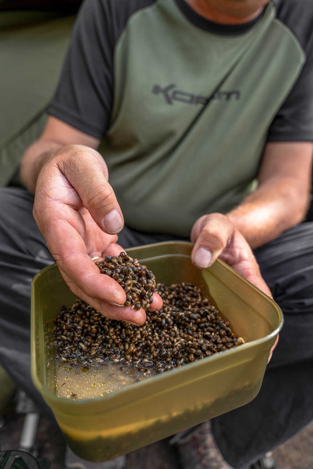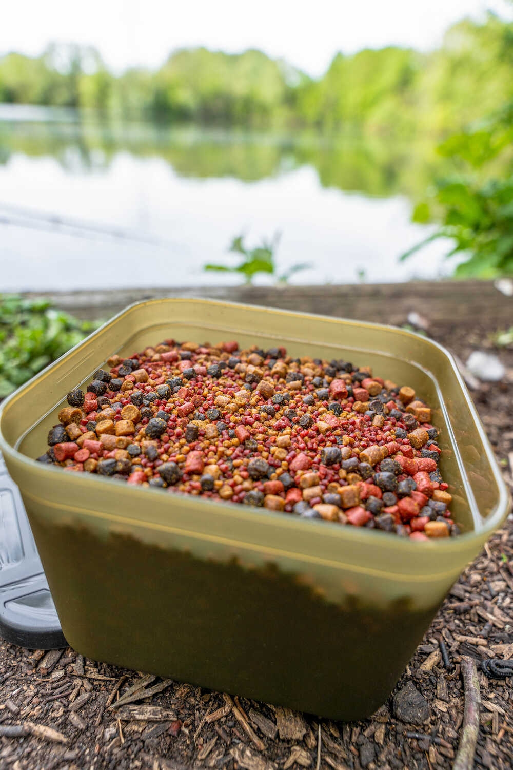 Korum Bait Tubs este o cutie masura oficiala pentru pelete si particule de mici dimensiuni. Vasele de plastic sunt calibrate si sunt concepute pentru pentru stocarea, mentinerea si limitarea pierderii accidentale a nadei. Sunt fabricate din material plastic de inalta calitate si dispun de capace cu perforatii ce au rol de ventilatie. Volumul cutiilor este de 0.6L, 1.2L si 1.8L.