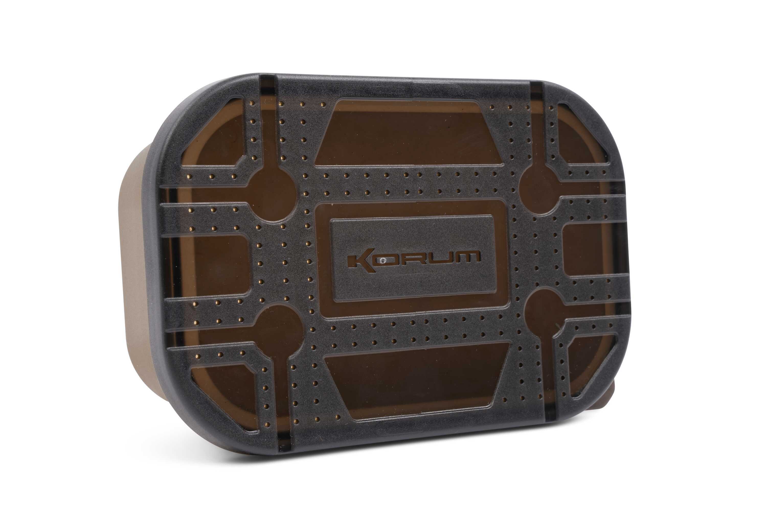 Cutia Korum Maggot Bait Box este proiectata pentru a oferi durabilitate si eficienta in depozitarea si transportul momelii vii. Fabricata din plastic rezistent, aceasta este ideala pentru pescarii care au nevoie de un recipient compact, dar robust, pentru momelile vii, precum viermusii, ramele sau larvele. Un aspect esential al acestui produs este capacul perforat cu inchidere ermetica, care asigura siguranta continutului, pastrand momeala vie si gata de utilizare. Designul capacului permite de asemenea stivuirea altor cutii pentru o organizare eficienta.