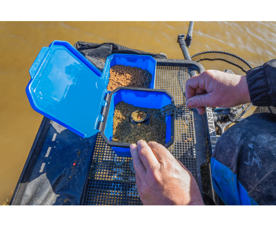 Fabricată din plastic turnat durabil, fără colțuri ascuțite, cutia este extrem de ușor de curățat și nu reține reziduuri. Este ideală pentru transportul și păstrarea tuturor tipurilor de nadă: pelete, viermuși, larve, semințe sau micropelete.