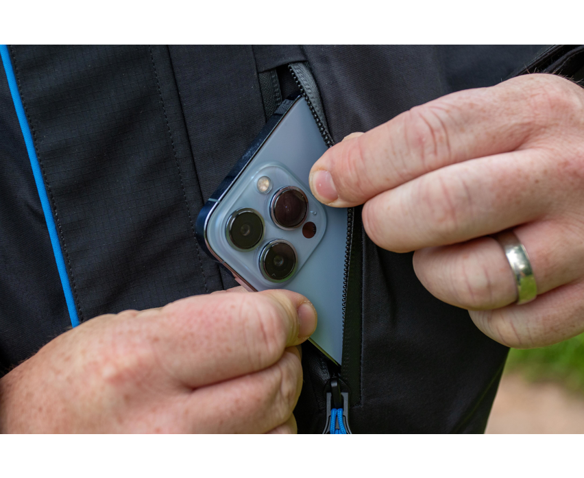Jacheta are o lungime ideala pentru libertate de miscare atunci cand esti asezat, un guler inalt pentru protectie sporita si fermoare impermeabile la buzunare si pe fermoarul principal. Mansetele din neopren cu orificii pentru degetul mare blocheaza curentii de aer, iar gluga impermeabila, cu viziera rigida si snur ajustabil, ofera protectie suplimentara impotriva ploii si vantului.
