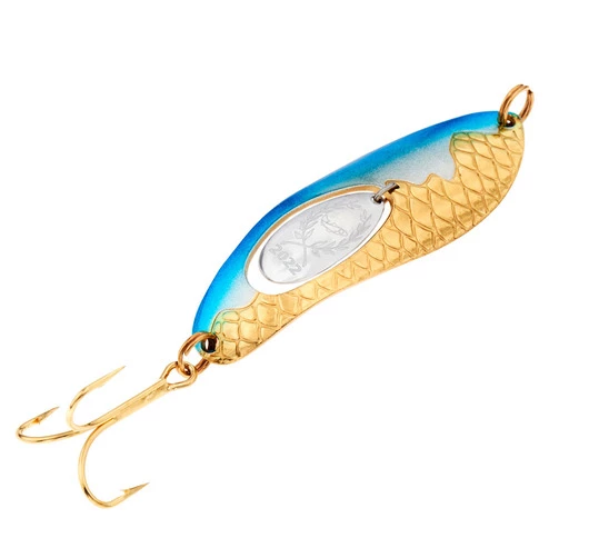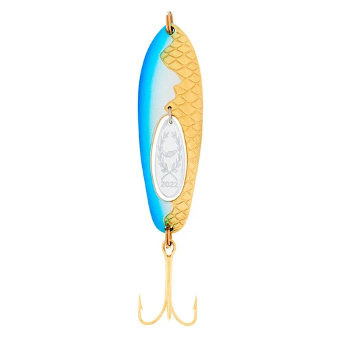 Kuusamo Vuosiuistin 2022 Taimen Super este o editie de colecție a mereu popularei linguri Taimen Super. Finisajele asemănătoare bijuteriilor fac din această lingurita nu doar o nalucă eficientă pentru pescuit, ci și un cadou grozav.Trout Super este realizata cu un model solzos special, care oferă o refracție unică a luminii în mediu. Clapeta liberă din mijloc modifica înotul normal al nalucii, facand peștele să devina nervos și să lovească naluca.