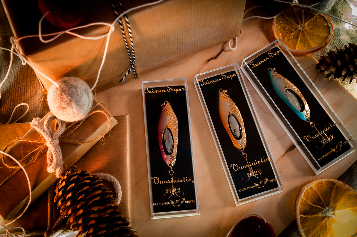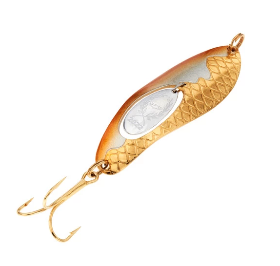 Kuusamo Vuosiuistin 2022 Taimen Super este o editie de colecție a mereu popularei linguri Taimen Super. Finisajele asemănătoare bijuteriilor fac din această lingurita nu doar o nalucă eficientă pentru pescuit, ci și un cadou grozav.Trout Super este realizata cu un model solzos special, care oferă o refracție unică a luminii în mediu. Clapeta liberă din mijloc modifica înotul normal al nalucii, facand peștele să devina nervos și să lovească naluca.