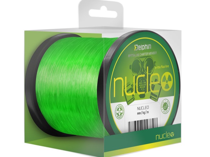 Delphin Nucleo este un fir monofilament pentru pescuit la crap de incredere in culoarea verde fluo. Se poate descurca cu sarcini dificile atunci cand pescuieste in diferite conditii de teren. Linia este rezistenta, cu o suprafata neteda si exista o frecare minima atunci cand se deruleaza de pe tambur sau cand trece prin inele. Culoarea are o vizibilitate buna chiar si atunci cand se intuneca afara. Nucleo este fabricat cu o tehnologie de varf care garanteaza o calitate constanta chiar si dupa multe utilizari.