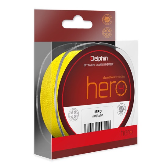 Delphin HERO 4 este un fir textil fabricat prin impletirea a 4 microfibre PE. S-a obtinut astfel un fir puternic si foarte rezistent la abraziune si cu o elongatie minima. Suplimentar, suprafata firului este tratata pentru a imbunatati rezistenta si pentru a impiedica absorbtia apei.