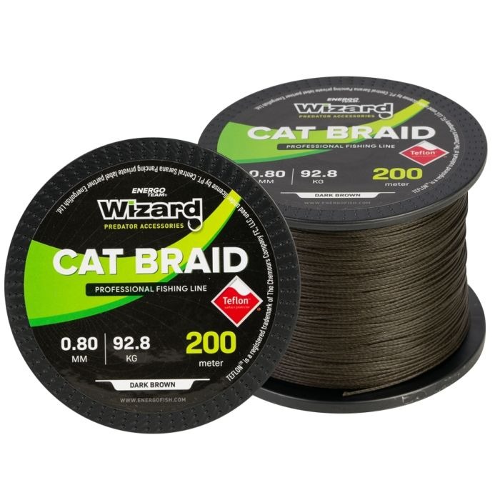 Firul textil EnergoTeam Wizard Cat Braid este construit pentru luptele epice cu uriașii apelor dulci, în special somnul. Acest fir de înaltă rezistență este conceput cu un singur scop: să nu cedeze. Combinând o rezistență extremă la tracțiune cu o elasticitate aproape nulă, asigură o conexiune directă și un control absolut asupra luptei, transmite fiecare mișcare a peștelui direct în mână. Tratamentul special cu teflon îi oferă o suprafață netedă ca mătasea, care alunecă perfect prin inele, reducând frecarea și permițând aruncări mai lungi. Rezistența sa excepțională la abraziune și la noduri îl face de încredere pe funduri dure și în situații critice. Culoarea maro închis (Dark Brown) oferă un camuflaj discret în majoritatea apelor. Bobina de 200m este generoasă pentru întreg sezonul.