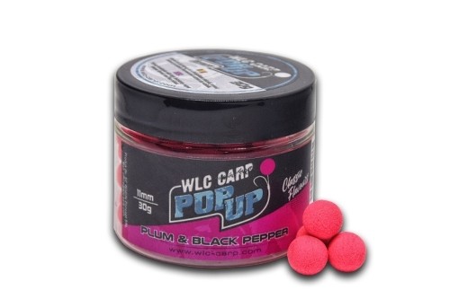 Gama de Pop-up-uri WLC Carp in arome clasice se gaseste in borcane de 30g, in culori fluorescente si cu o flotabilitate ridicata, mixul fiind realizat de catre echipa WLC Carp. Textura pop-up-urilor este una moale, elastica, ce poate if usor patrunsa de o croseta ceva mai mare sau de arhicunoscutele ,,bait sting / bait screw". Aceste momeli flotante sunt foarte atractive si pot fi folosite atat ca momeli singulare cat si in conjunctie cu alte momeli de carlig, precum boiliesuri SuperDip, Covered, Solubile pentru formarea clasicului ,,snowman".