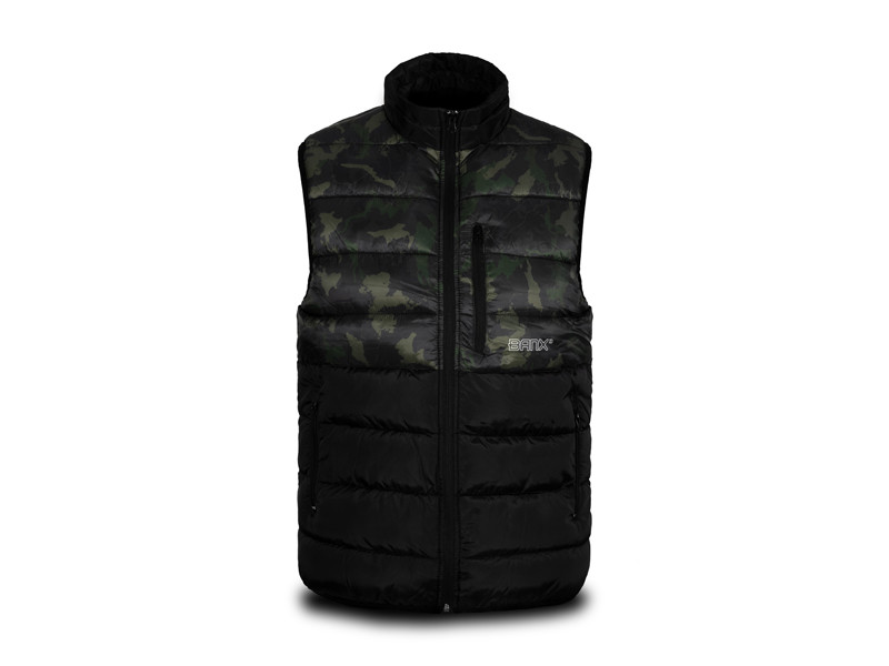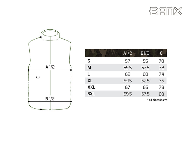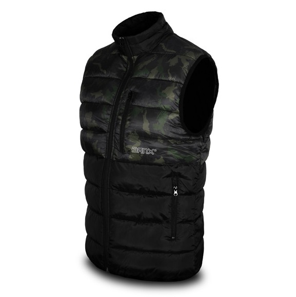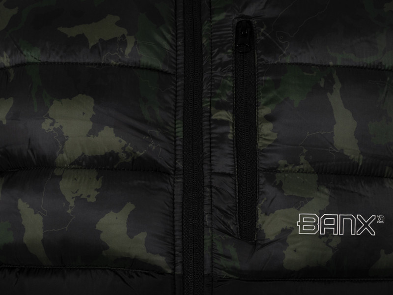Modelul include buzunare laterale spatioase pentru maini sau accesorii, iar gulerul inalt protejeaza gatul si ceafa de temperaturile scazute. Designul combina culoarea neagra cu modelul camo BANX, potrivit atat pentru pescuit, cat si pentru purtare zilnica.