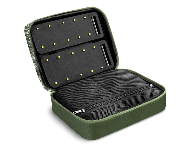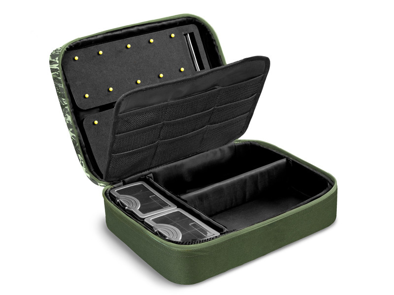 Delphin RigStation Space C2G este o geantă special concepută pentru organizarea eficientă a monturilor și accesoriilor esențiale pentru pescuitul la crap. Cu un design compact, dar cu spațiu de depozitare generos, această geantă este echipată cu 4 cutii practice și suprafețe din spumă pentru fixarea monturilor. Fabricată din materiale durabile și cu un fermoar rezistent la uzură, oferă siguranță și acces rapid la echipament.