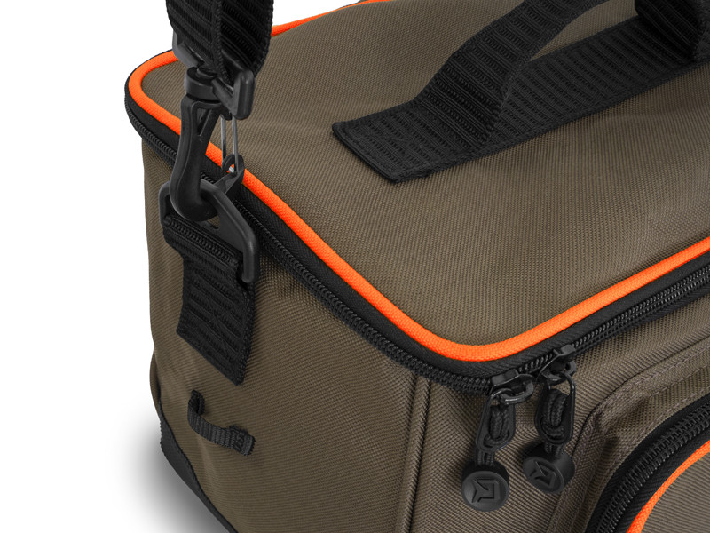 Delphin Proxes Easy este o geanta compacta si practica pentru toti pasionatii de pescuit la spinning, feeder sau match. Easy si alte echipamente din seria Proxes sunt produse bine realizate, de inalta calitate, la un pret corect. Combinatia de culori a seriei Proxes ofera un aspect elegant care se potriveste cu mediul inconjurator. Benzile portocalii reprezinta un contrast placut si o vizibilitate mai buna atunci cand se intuneca sau este ceata.