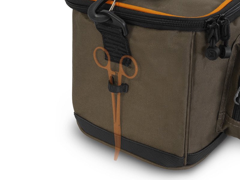 Accesul la compartimentul principal este asigurat de un fermoar de calitate, cu tragatoare si logo-uri Delphin. Partea interioara a capacului are un buzunar cu fermoar si plasa pentru a depozita obiecte mici sau documente. In plus, geanta are un alt spatiu de depozitare sub forma unui buzunar cu fermoar in partea din fata. Ca si in cazul tuturor produselor Delphin, detaliile sunt cruciale. De aceea, Easy are, de asemenea, bucle pe ambele parti pentru a depozita forcepsul sau clestele. Pentru un transport facil, exista un maner de transport si o curea de umar captusita si reglabila.