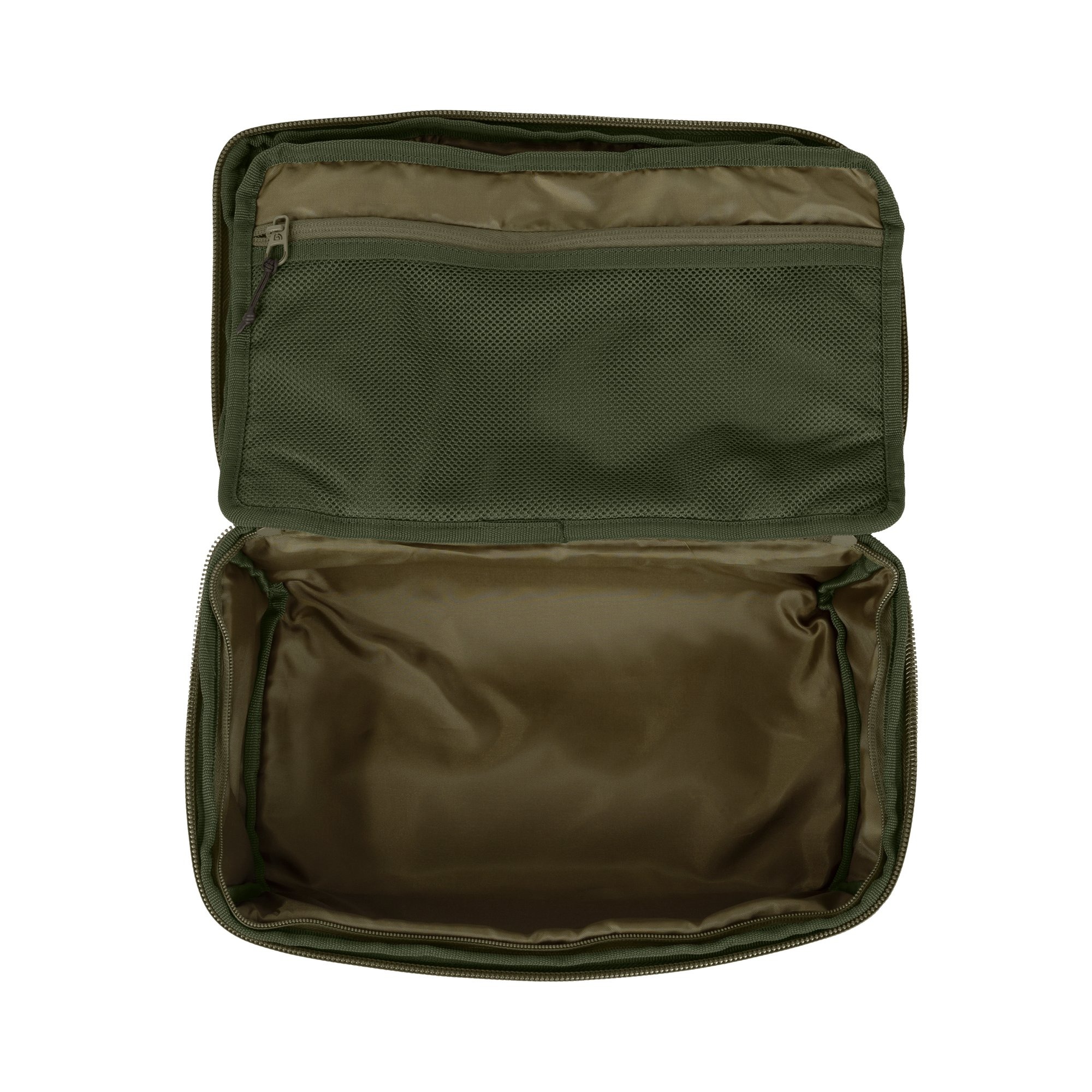 Interiorul este prevazut cu zece buzunare interne, concepute pentru organizarea precisa a accesoriilor de pescuit. Compartimentul central cu fermoar include si un buzunar din plasa ventilata, perfect pentru plicuri PVA sau alte articole care trebuie aerisite. In plus, sase buzunare suplimentare ofera loc pentru cutii de accesorii, rig boards sau consumabile diverse.