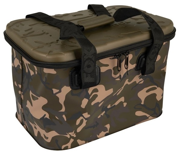 Geanta impermeabila de la FOX fabricata din EVA, cu imbinari sudate, pentru a impiedica patrunderea apei la interior. Dispune de capac superior, fermoare extrem de rezistente la uzura manere din poliester prevazute cu manson EVA pentru un plus de confort la transport. Este ideala pentru pescarii care pescuiesc din barca si care vor sa-si mentina echipamentul uscat si ferit de ploaie. Poate fi de asemenea utilizata pentru pastrarea nadelor / amestecurilor pentru spod sau a echipamentului ud, precum saci de pastrare, haine, etc. Finisajele au modelul unic Fox Camo, fapt ce va face geanta sa iasa in evidenta fata de restul gentilor de pescuit.