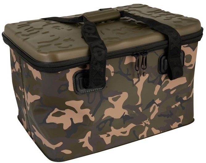 Geanta impermeabila de la FOX fabricata din EVA, cu imbinari sudate, pentru a impiedica patrunderea apei la interior. Dispune de capac superior, fermoare extrem de rezistente la uzura manere din poliester prevazute cu manson EVA pentru un plus de confort la transport. Este ideala pentru pescarii care pescuiesc din barca si care vor sa-si mentina echipamentul uscat si ferit de ploaie. Poate fi de asemenea utilizata pentru pastrarea nadelor / amestecurilor pentru spod sau a echipamentului ud, precum saci de pastrare, haine, etc. Finisajele au modelul unic Fox Camo, fapt ce va face geanta sa iasa in evidenta fata de restul gentilor de pescuit.