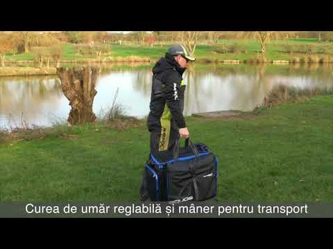Geanta este dotată cu o curea de umăr captușită și ajustabilă, precum și cu mânere ergonomice, facilitând transportul comod chiar și atunci când este complet încărcată. Buzunarul frontal este ideal pentru depozitarea aditivilor, momelilor de cârlig sau a altor accesorii esențiale.