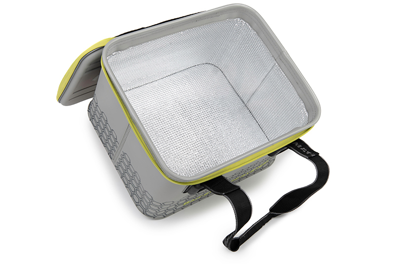 Fabricată din EVA 100% rezistent la uzură, cu cusături sudate termic pentru impermeabilitate totală, această geantă este ideală pentru păstrarea nadelor în condiții optime. Interiorul este căptușit cu folie metalică reflectivă, asigurând o excelentă izolație termică în orice anotimp.