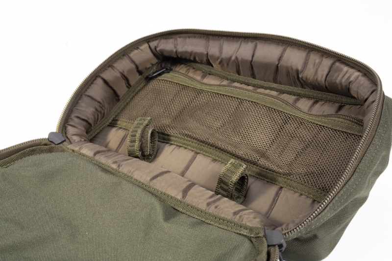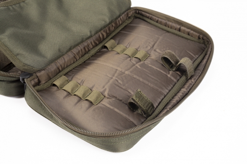 Divizor central capitonat, plus bucle elastice pentru a reține până la patru banksticks de 30 cm (12 inch) și un buzunar cu plasă cu fermoar pentru indicatoare.