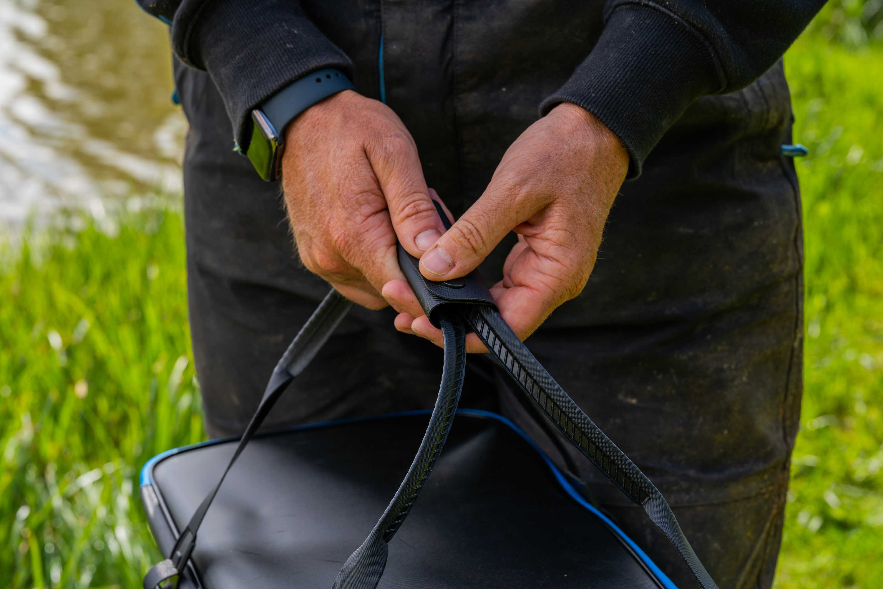 Materialul EVA este recunoscut pentru rezistența sa la apă, uzură și murdărie, ceea ce face ca această husă să fie ușor de curățat și ideală pentru condițiile de pe malul apei. Interiorul impermeabil previne scurgerile și protejează restul echipamentului în timpul transportului.