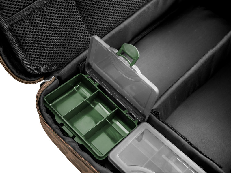 Pastrarea tuturor componentelor si a monturilor a fost intotdeauna o lupta pentru un pescar activ de crap. Pana in momentul in care am proiectat designul modelului RigStation. Geanta care ofera un spatiu de pastrare urias este in acelasi timp si compacta. Geanta care imbina penarul pentru monturi cu geanta pentru bijuterii.