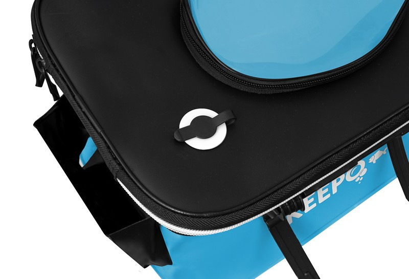 Delphin Keepo este o geanta destinata stocarii de momelala vie, mai exact pestisorii de mici dimensiuni utilizati in pescuitul rapitorilor. Dimensiunile de 36x25x22cm o fac sa fie o geanta usor de transportat si depozitat, iar materialul EVA din care este confectionata nu se deformeaza si rezista la uzura un timp indelungat. Geanta este de culoare albastru deschis si dispune de un fermoar cu inchidere etansa pe toata lungimea capacului.