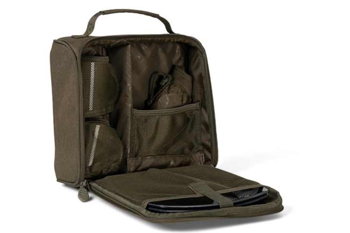 Trusa este echipata cu manere de prindere captusite din poliester si este stilizata cu un model unic Fox Camo. Fabricata din material rezistent la uzura si apa, poliester tratat 500D, trusa dispune de fermoare duble de 10 mm pentru o durabilitate maxima. Dimensiunile acesteia sunt 28x12x28cm, fiind fabricata din 100% poliester, cu umplutura din 100% polietilena.