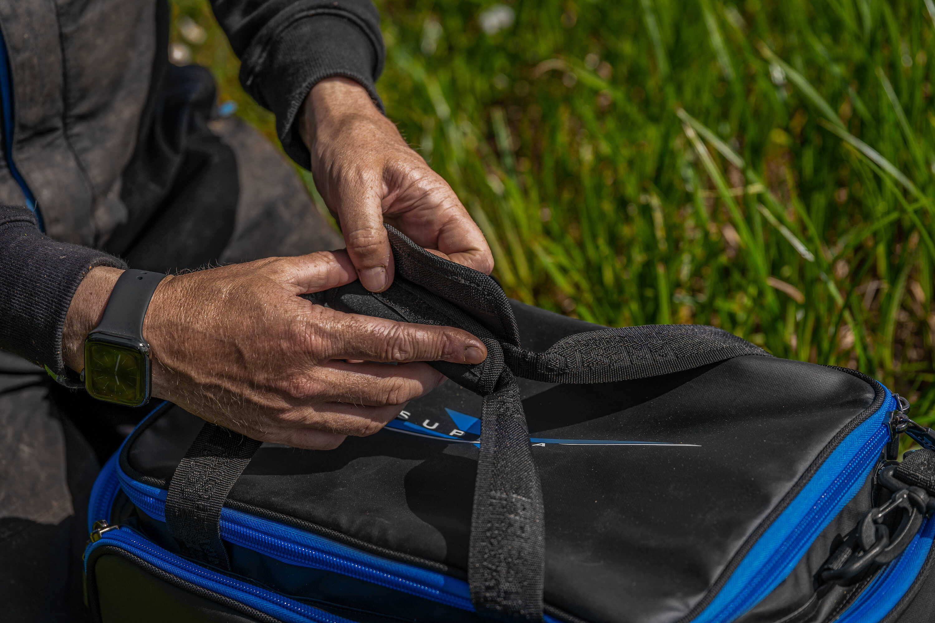 Buzunarul frontal este ideal pentru depozitarea aditivilor lichizi sau a altor accesorii frecvent utilizate. Mânerele căptușite cu neopren oferă un confort sporit chiar și atunci când geanta este complet încărcată.